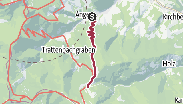 Der Weg führt beim Gästehaus „Karl“ vorbei — ident mit dem T14 Ahornweg — und führt über den Forstweg hinter dem Hubertushof hinauf bis zum Almweg. Über diesen gelangt man dann — ident mit dem T3 Schwaigweg — zur Steyersberger Schwaig.